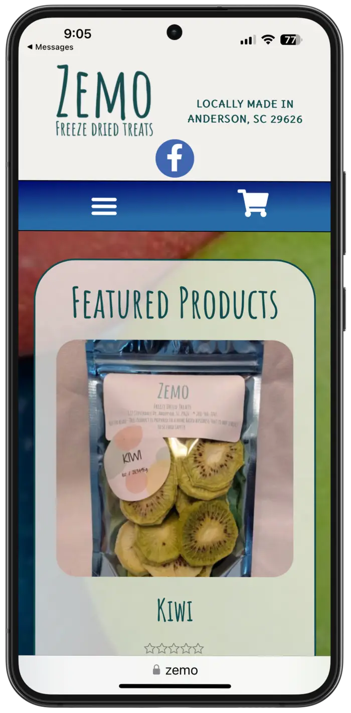 The Zemo eCommerce website, designed by Upstate SC Web Design, features a clean, modern layout that highlights the brand’s vibrant freeze-dried candy and fruit snacks. Built for a smooth shopping experience, the site includes bold product images, easy navigation, and secure checkout functionality. Custom branding elements and playful visuals reflect Zemo’s fun, flavorful products, while mobile optimization ensures customers can shop seamlessly from any device. Based in Anderson, SC, Zemo’s site is tailored to grow its local online presence and connect with snack lovers across South Carolina.